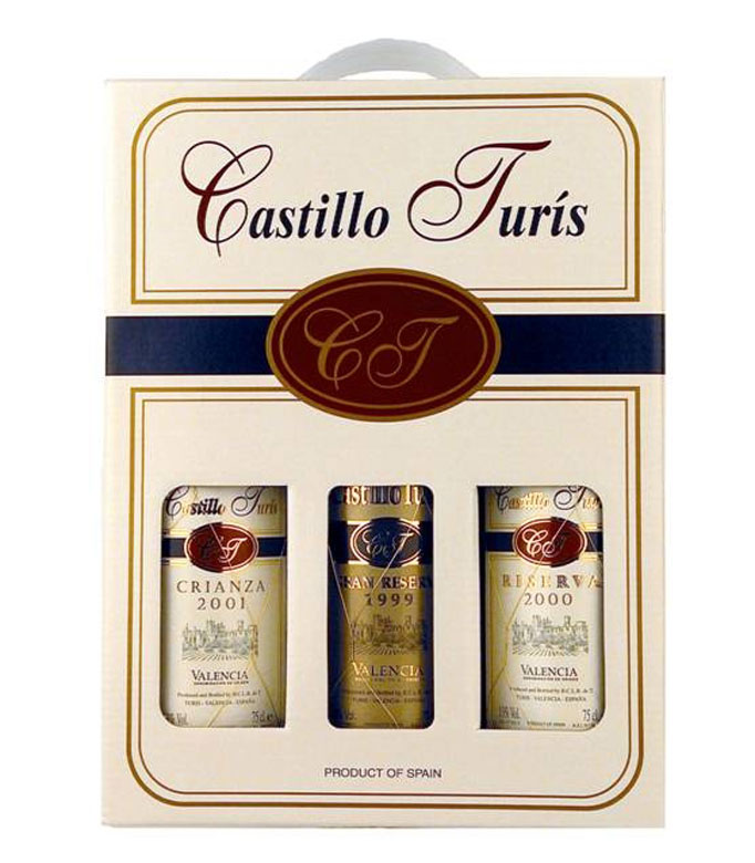 Castillo Turis 3-pack sisaldab: Castillo Turis Crianza, Castillo Turis Reserva, Castillo Turis Gran Reserva;